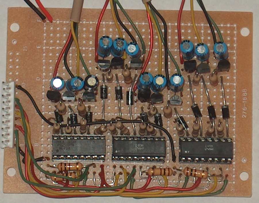 This page outlines and does what I can to explain how I built an interface board to increase the output power of the Digitax SE8C. I have done what I can to try to use as common of parts as I possibly could. I also managed to keep the suppliers to a minimum(2). Please understand that I am not an engineer but a hobbiest that with the help of an electical engineer we designed and built this. I have not done a ton of math on any of the components. I believe the components to be accurate. Bottom line is that you are building this at your own risk. It works for me and I am doing what I can to convey this to you. All pictures in this document are thumbnails of larger pictures. Just click on the pictures and a larger picture will open in a new page. |