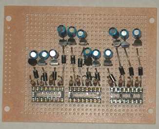 Next the diodes are inserted. Notice the direction that the band is pointing. |